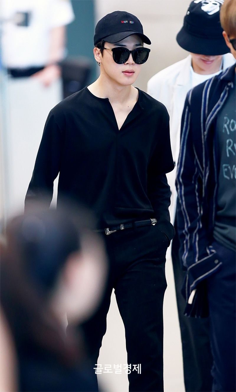 Về Jimin thì thành viên này có phong cách thời trang sân bay khá đơn giản và dễ đoán, anh luôn xuất hiện với trang phục bình thường giản dị nhưng không kém phần thanh lịch.