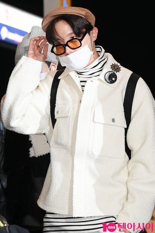 Cũng giống như RM, J-Hope luôn gây ấn tượng với phong cách thời trang sân bay đầy màu sắc và được đầu tư kĩ lưỡng.