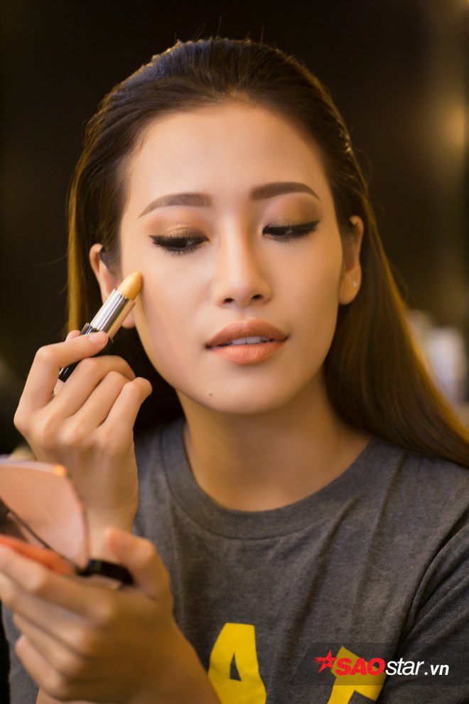 Trong hậu trường The Face tập 2 lần này không chỉ là sự lung linh của phòng make up khi được thắp loạt đèn vàng cam sáng toàn bộ mà còn ở lớp nhũ vàng óng ánh phản chiếu trên khuôn mặt của các thí sinh. Không biết thử thách của tập 2 là gì mà các cô gái lại được họa mặt cuốn hút và độc đáo đến vậy.