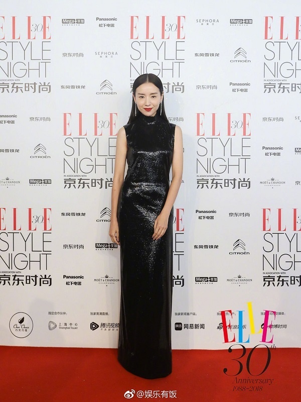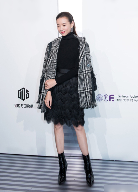 Xuất hiện trong một sự kiện thời trang gần đây, Đổng Khiết chọn cho mình phong cách thanh lịch, sang trọng và nữ tính với bộ váy đen da bóng ánh lấp lánh với mái tóc thẳng ép sát