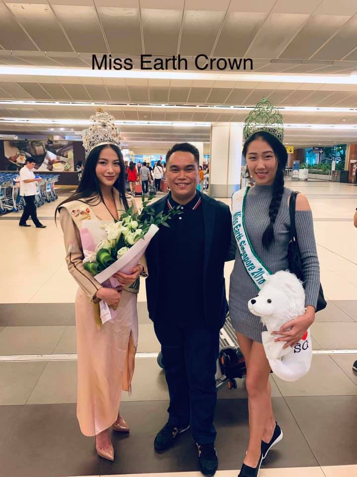 Xuất hiện tại sân bay để chào đón Hoa hậu Phương Khánh, đích thân nhà sáng lập cuộc thi Miss Earth - Glen Tristan đã có mặt từ rất sớm cùng rất nhiều người hâm mộ. Bên cạnh đó, người đẹp gốc Bến Tre còn nhận được sự yêu mến từ đương kim Hoa hậu Trái đất Singapore 2018 - Kara Dong và dàn thí sinh trong cuộc thi năm nay.