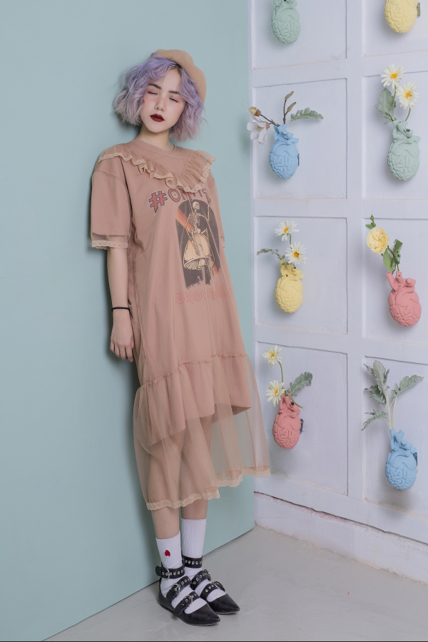 Không kém phần ngọt ngào trong những chiếc váy voan phối bèo vô cùng đáng yêu.