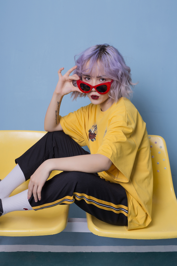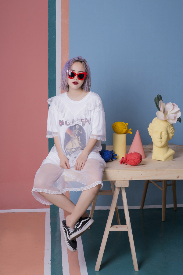 Có thể thấy đạo cụ của concept Neo-Memphis luôn đặc biệt và thú vị, biểu cảm cô nàng cũng khá sinh động với mái tóc xõa đầy gợi cảm.
