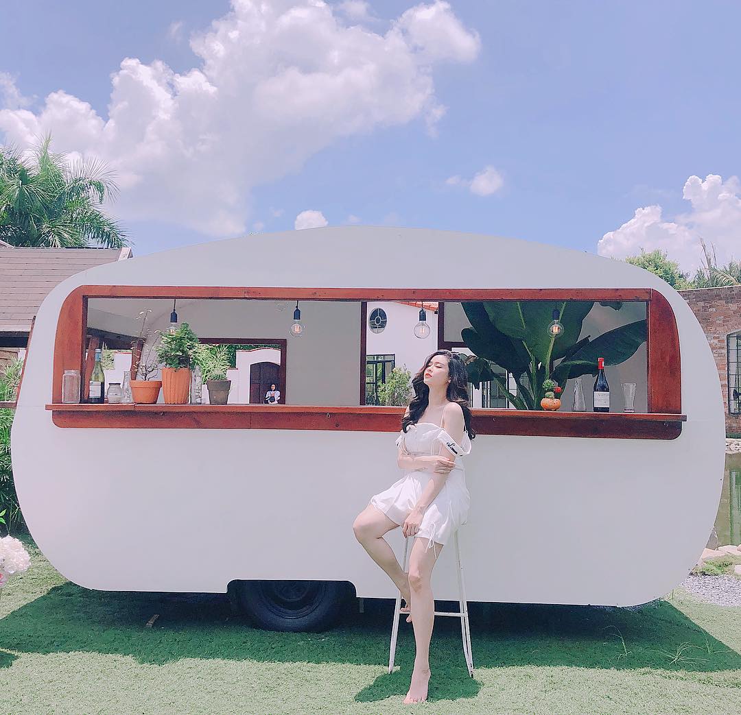 Váy trễ vai tông màu trắng kem thanh nhẹ là sự lựa chọn của Trương Quỳnh Anh để tỏa sáng trong nắng hè.