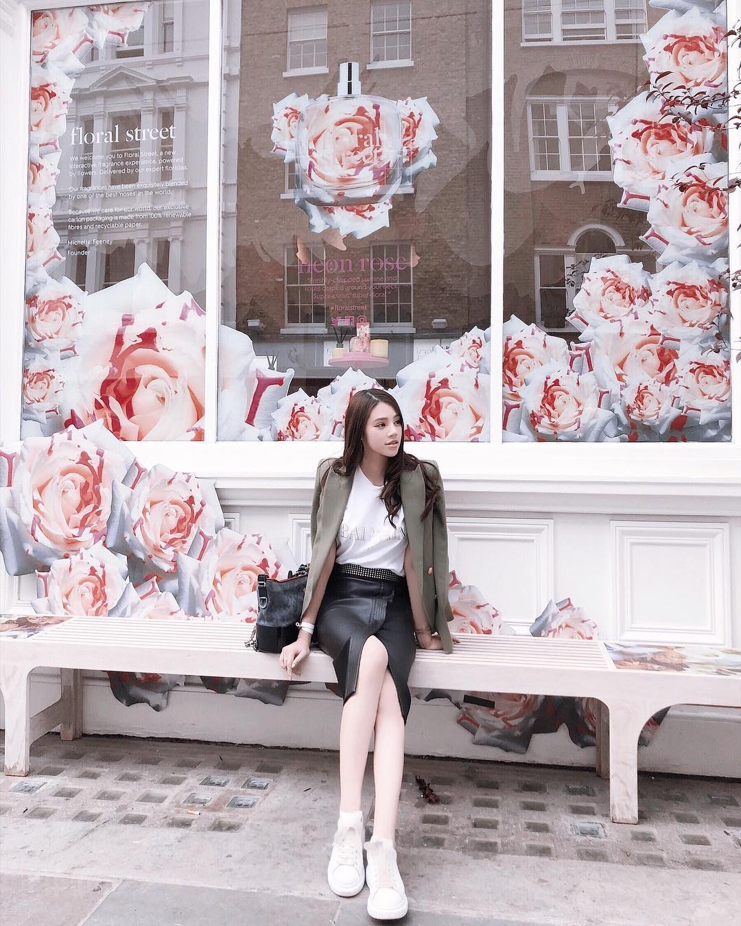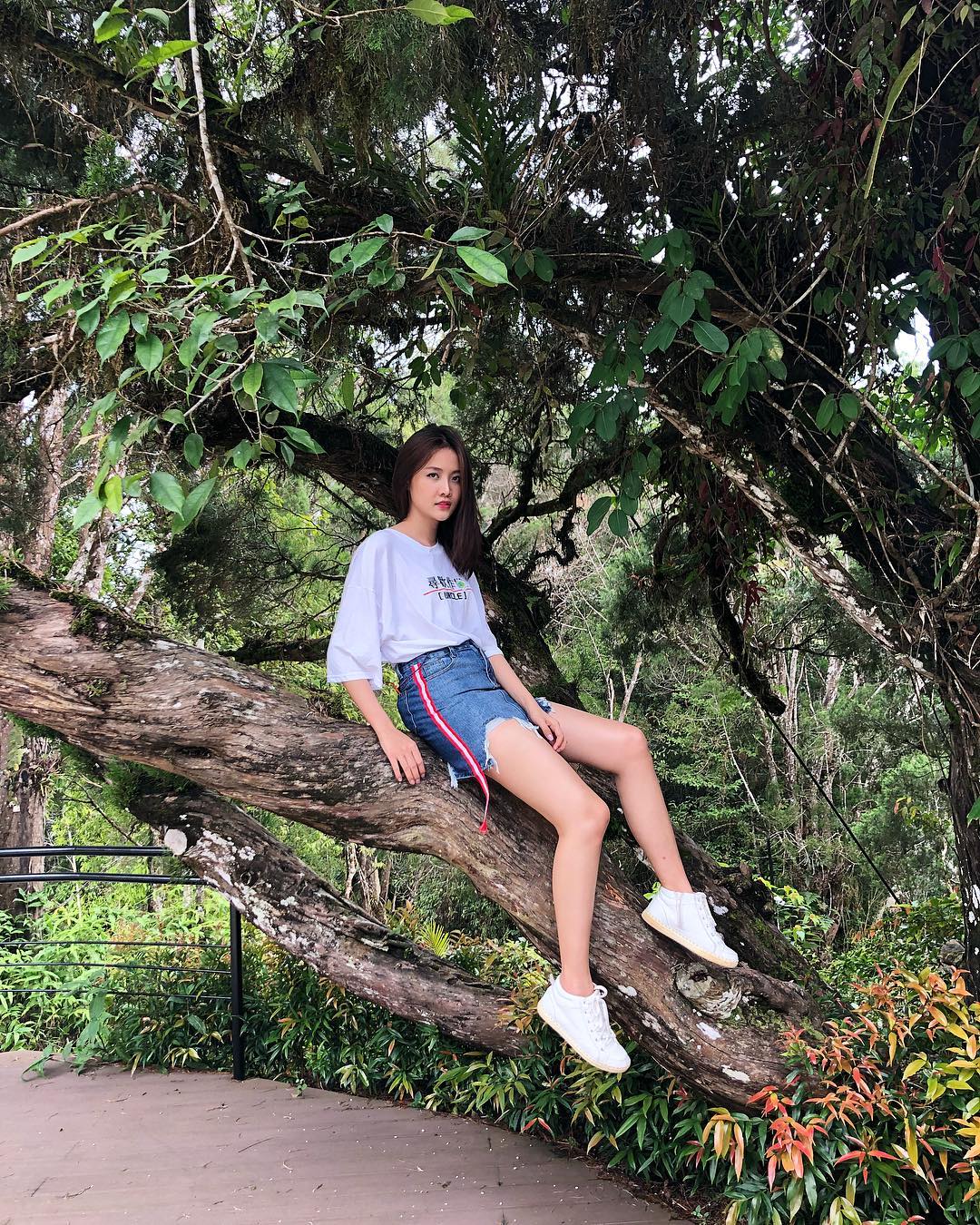 Chẳng cần cầu kỳ, chỉ với chân váy xé cùng áo thun phom rộng, Trương Mỹ Nhân đã hoàn toàn nổi bật, năng động.