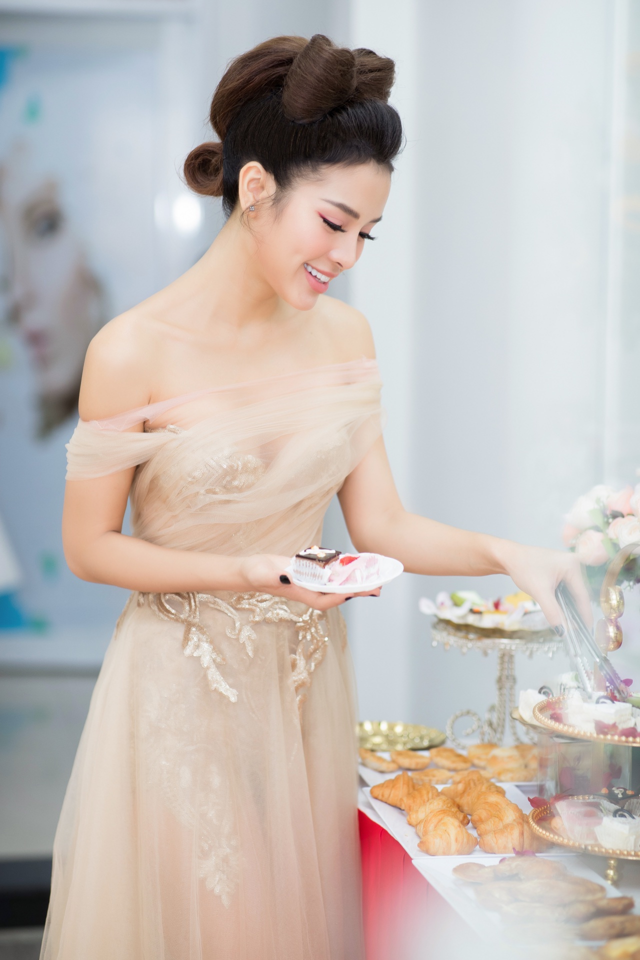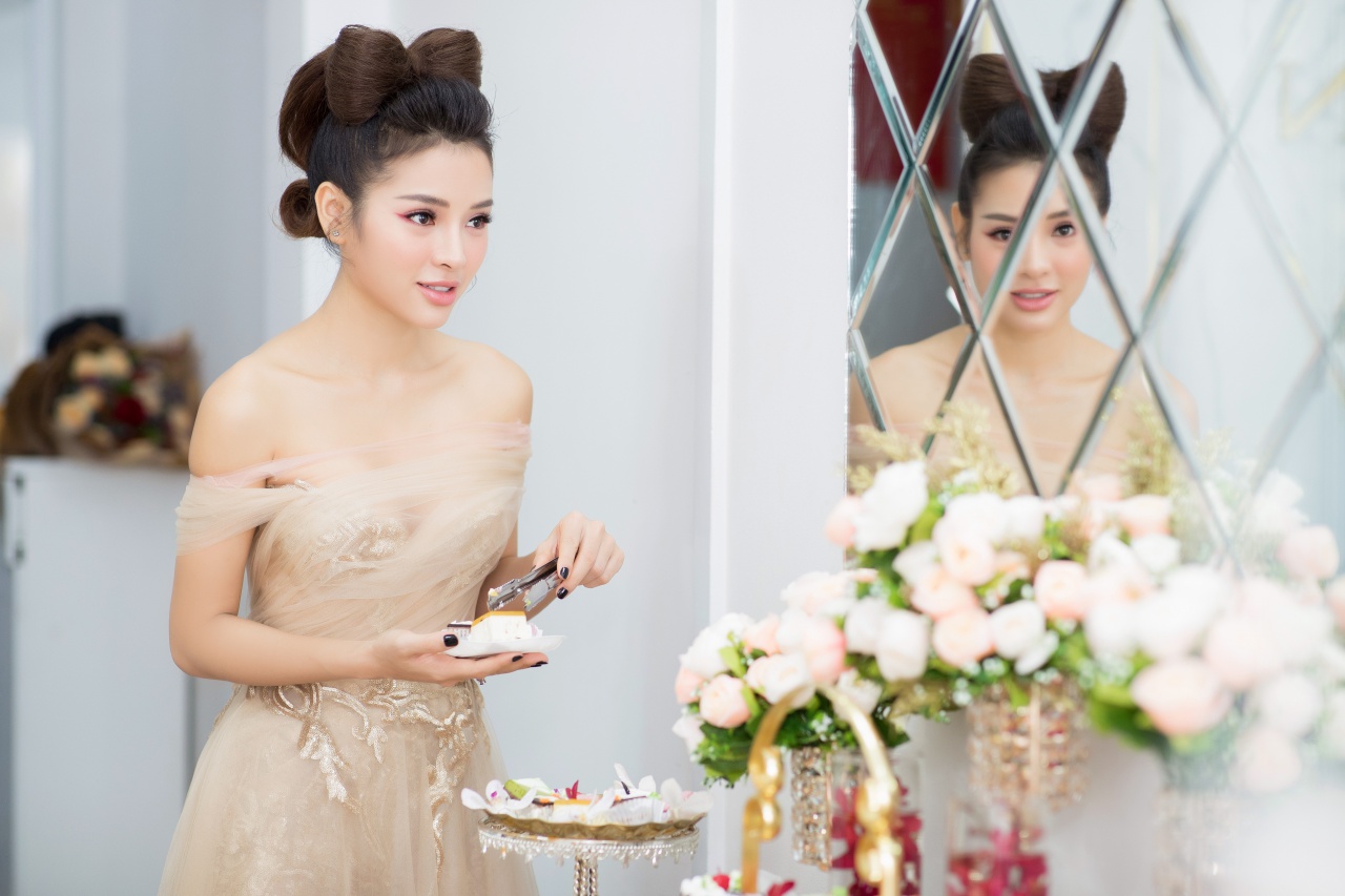Ngay lập tức, nhiều tín đồ thời trang đã nhận ra đây là kiểu tóc búi nơ được lấy cảm hứng từ Lady Gaga, nhưng khác với sự cá tính của “Mother Monster”, người đẹp Việt hướng đến nét đẹp nhẹ nhàng, tao nhã.