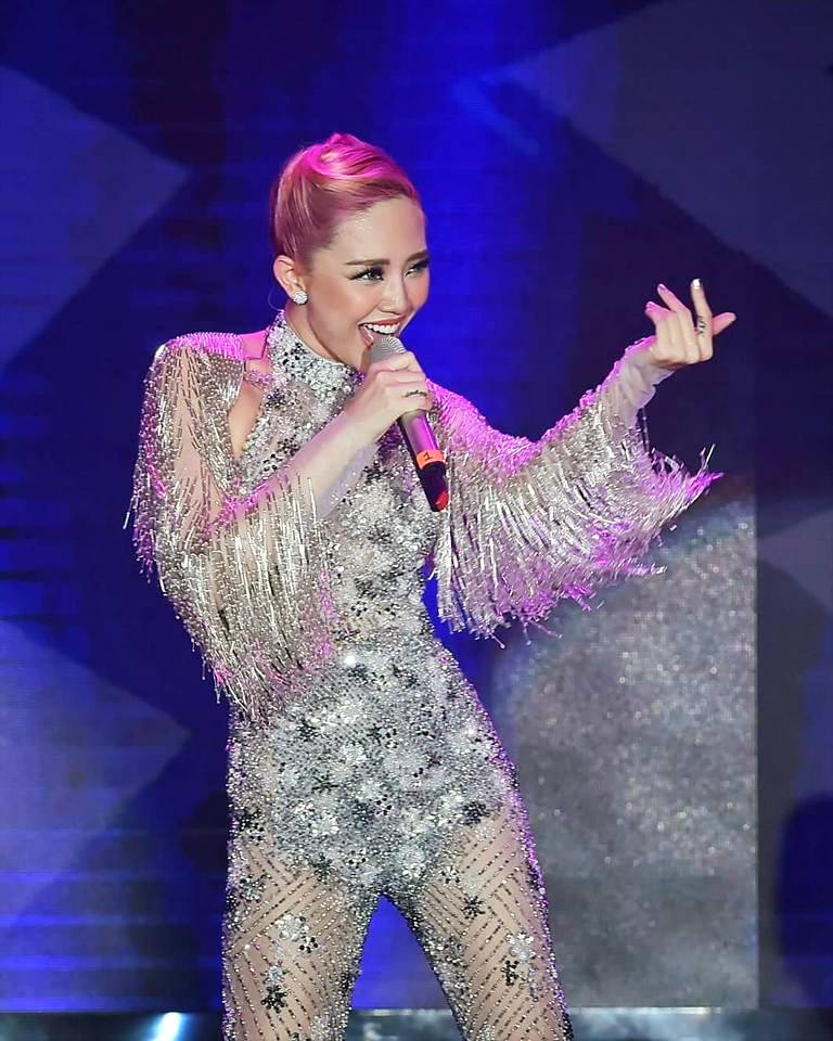 Trở lại với mái tóc pixie vào nếp khá gọn gàng nhưng Tóc Tiên lại nhuộm màu hồng khá lạ, làm cho cô nàng trông đặc biệt hơn rất nhiều. Nhưng nếu bạn không sở hữu một làn da trắng sứ và gương mặt chuẩn V-line như Tóc Tiên thì đừng cố gắng học tập kiểu tóc táo bạo này nhé.