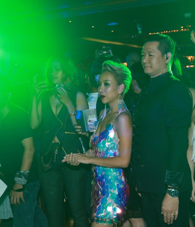 Ngay sau đó, khi nhập tiệc, nữ ca sĩ lại thay bộ váy ánh kim vỏ sò lấp lánh đầy chất tiệc tùng và cá tính
