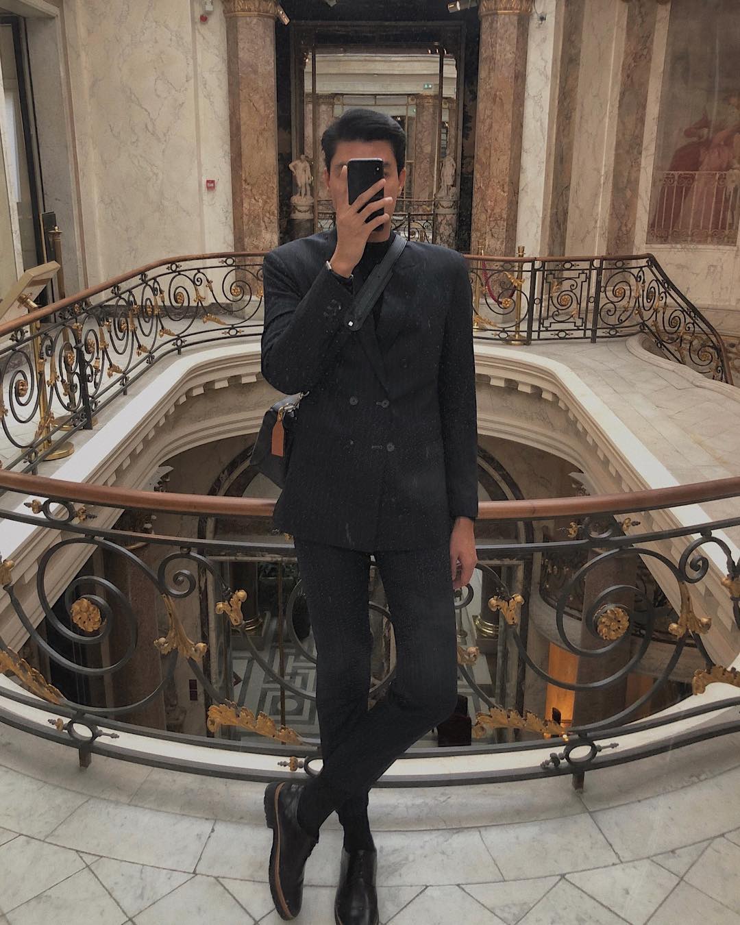 “Chú” Quang Đại tiếp tục “thả thính” các cháu với outfit gồm cả cây vest chất lừ. Sự tinh tế trong tính cách còn được thể hiện qua cách phối màu phụ kiện túi và giày có sự tương đồng.