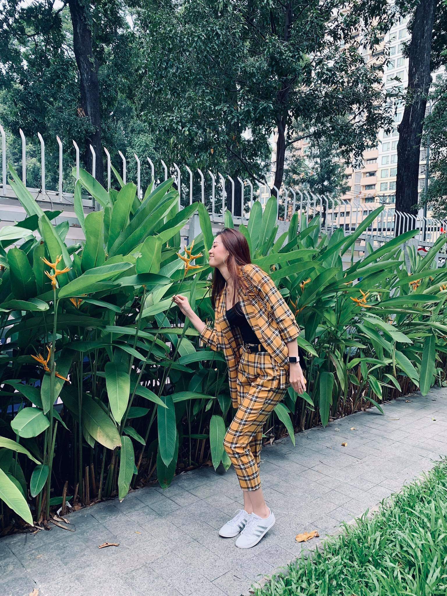Khánh Vân vô cùng năng động, trẻ trung với bộ vest họa tiết tông màu sáng. Cách tạo dáng của cô nàng cũng được nhận xét là vô cùng nhắng nhít, thú vị.