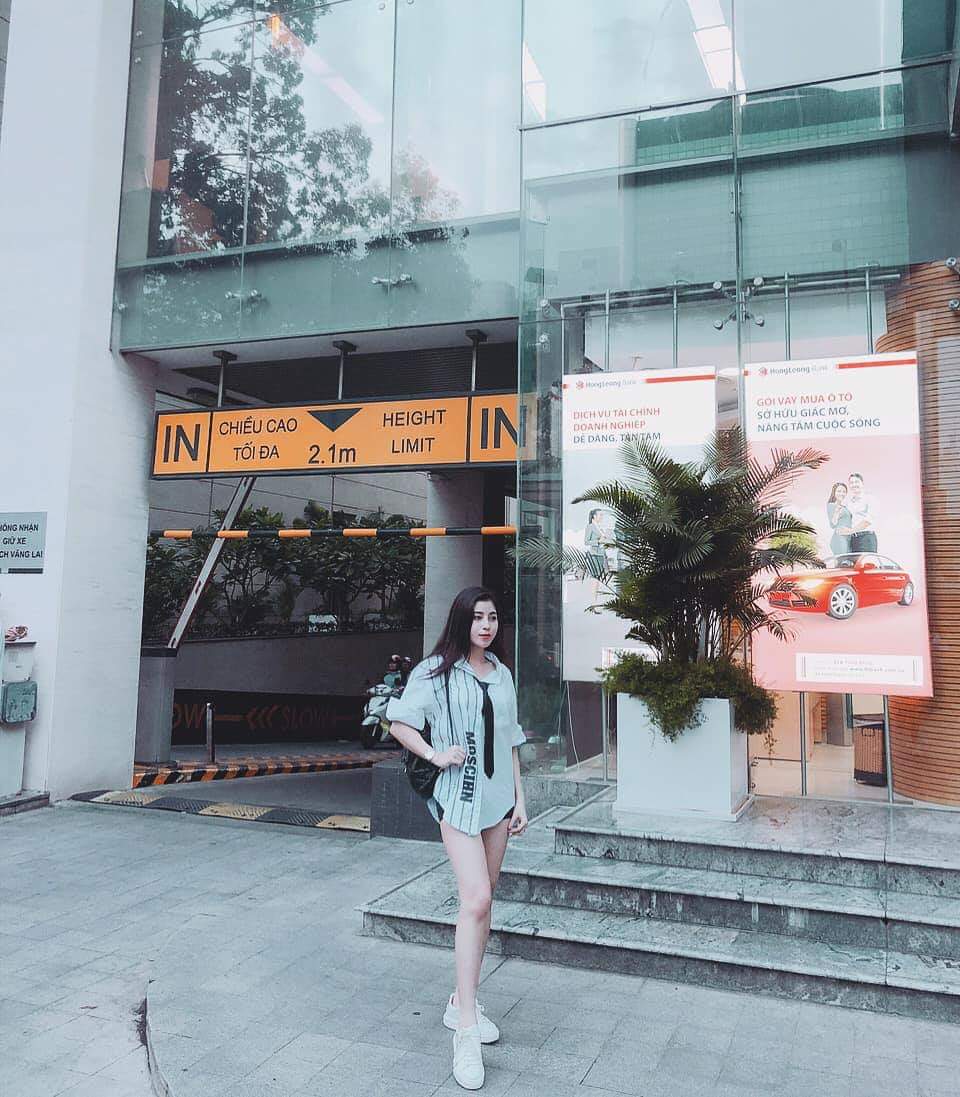 Ngọc Ánh - Quán quân The Voice 2018 khoe chân dài miên man với combo áo sơ - mi sọc cùng quần short theo style giấu quần. Cô nàng còn sử dụng thêm một chiếc cravat làm điểm nhấn.