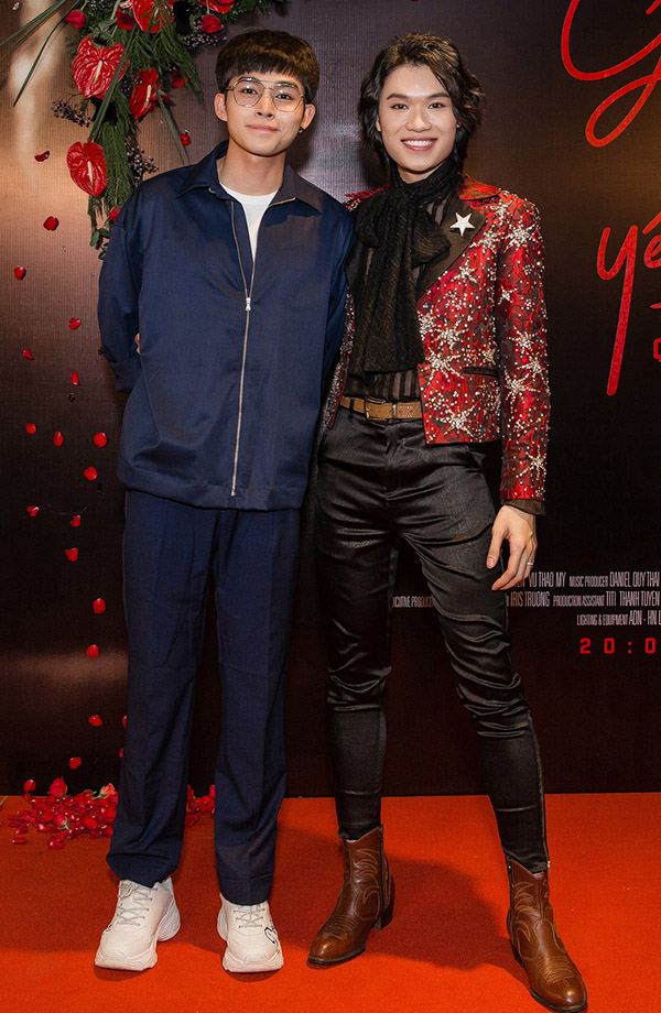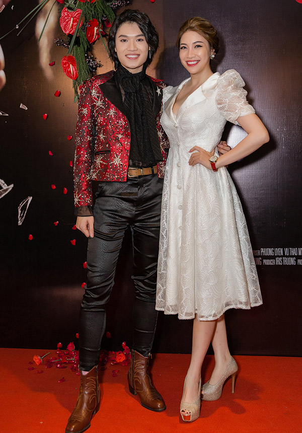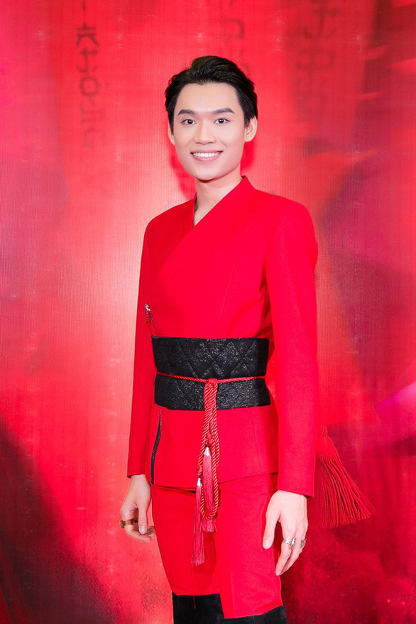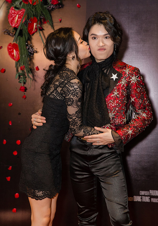 Tạm chưa bàn về giọng hát hay sản phẩm âm nhạc đầu tay thế nào, nhưng ngay trong sự kiện ra mắt MV, anh chàng đã thật sự nổi bật khi chọn cho mình chiếc áo sơ-mi cổ nơ ren thêm áo khoác đỏ đính đá rực rỡ, và sợ rằng mình chưa đủ “sáng”, Quang Trung quyết tâm đánh thêm lớp phấn trắng toát kèm chút son lòng môi bóng bẩy thế này.