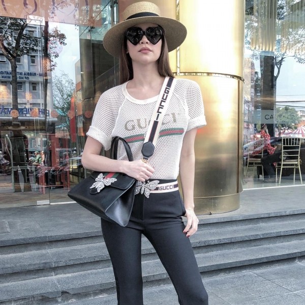 Tóc Tiên đặc biệt yêu thích kiểu kính này, cô thường kết hợp với quần áo nhìn có vẻ đơn giản nhưng lại toàn hàng hiệu đắt đỏ.