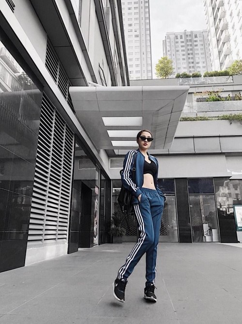 Trong một set đồ thể thao, Bảo Anh cũng sử dụng chiếc kính này làm điểm nhấn để outfit nổi bật hơn.