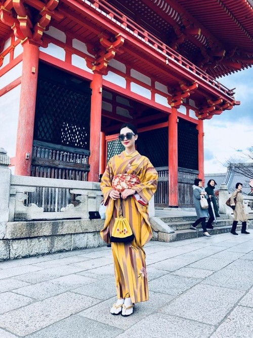 Hà Thu trong chuyến đi đầu xuân cũng sử dụng kính mắt vuông to bản rất thời trang.