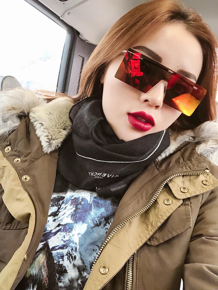Và mắt vuông che gần hết mặt. Những kiểu kính này cực kỳ ăn ý với phong cách thời trang cá tính riêng biệt mà Kỳ Duyên đang xây dựng.