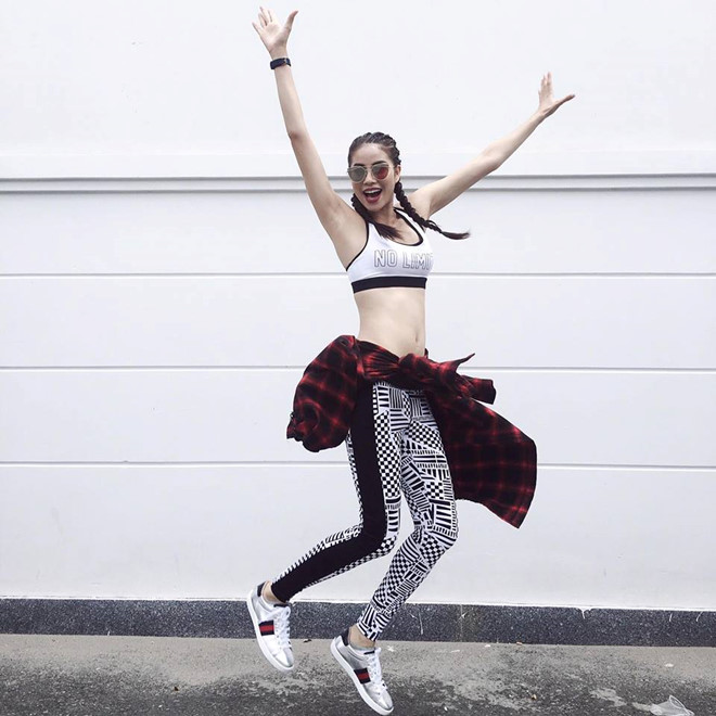 Có thể thấy, không những đa dạng trong phong cách thời trang tại các sự kiện thảm đỏ, “Hoa hậu quốc dân” còn hết sức đa dạng trong việc lựa chọn các trang phục thể thao để làm mới bản thân mỗi khi xuất hiện tại phòng tập để tránh sự nhàm chán.