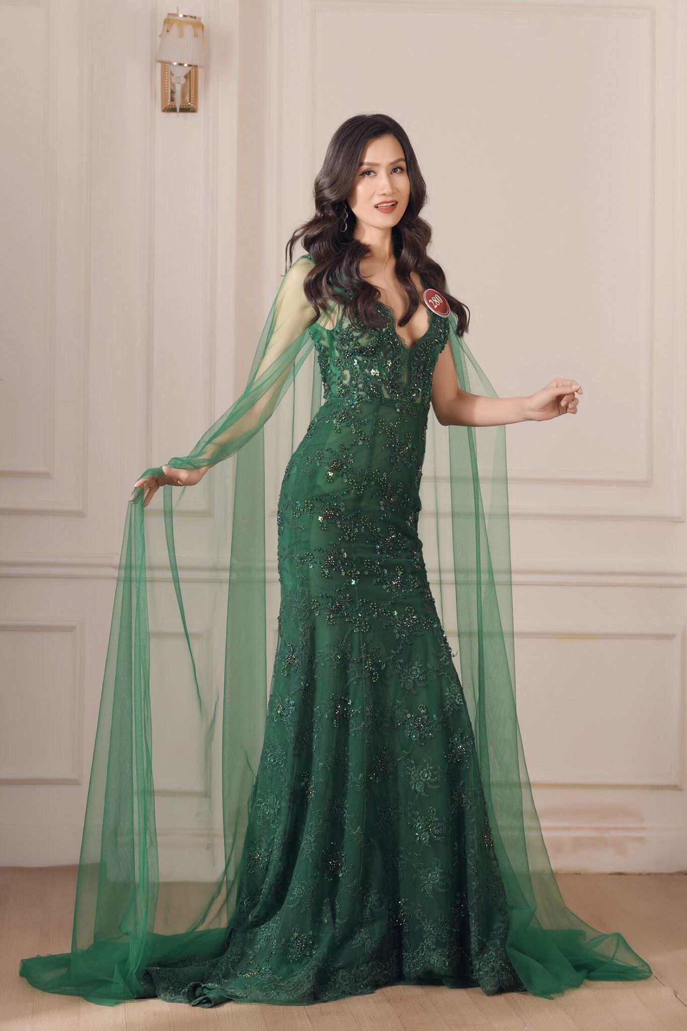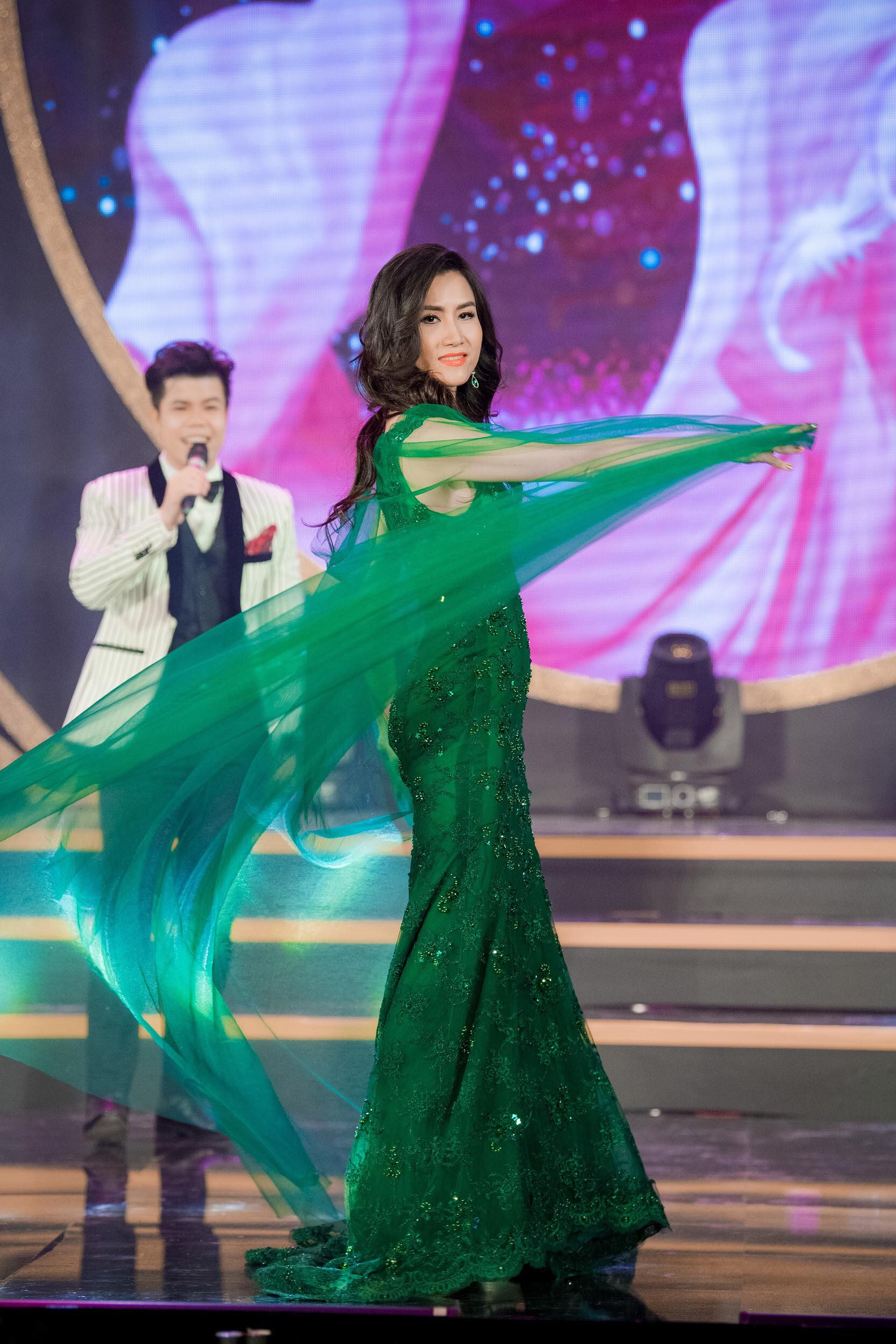 Qúy bà Phạm Thị Hải Yến lộng lẫy với chiếc đầm xanh ngọc lục bảo