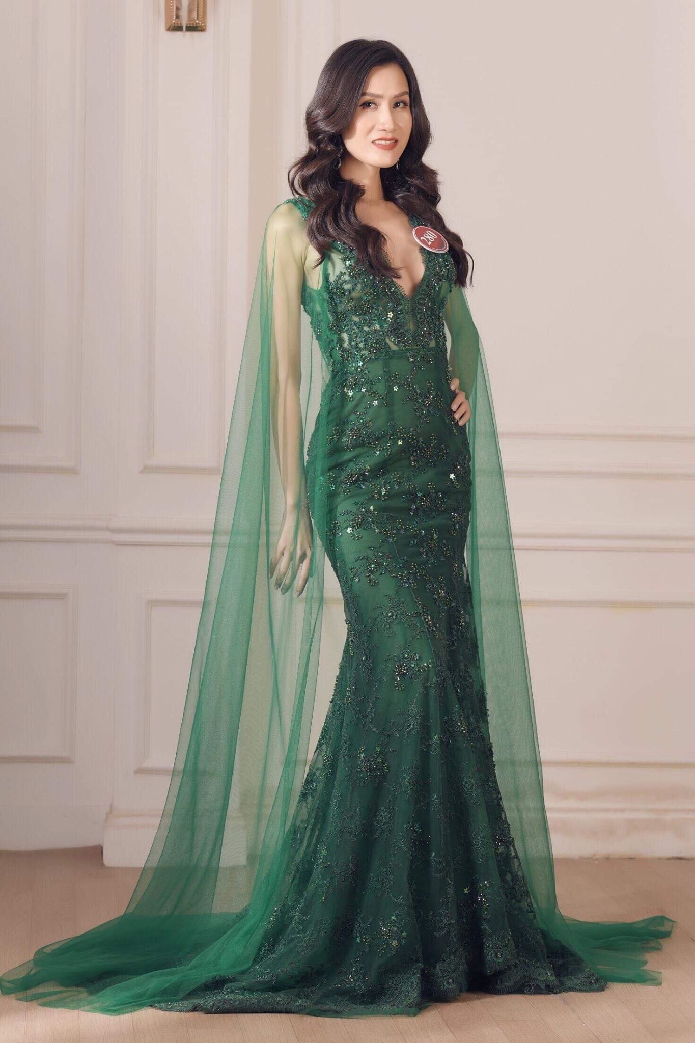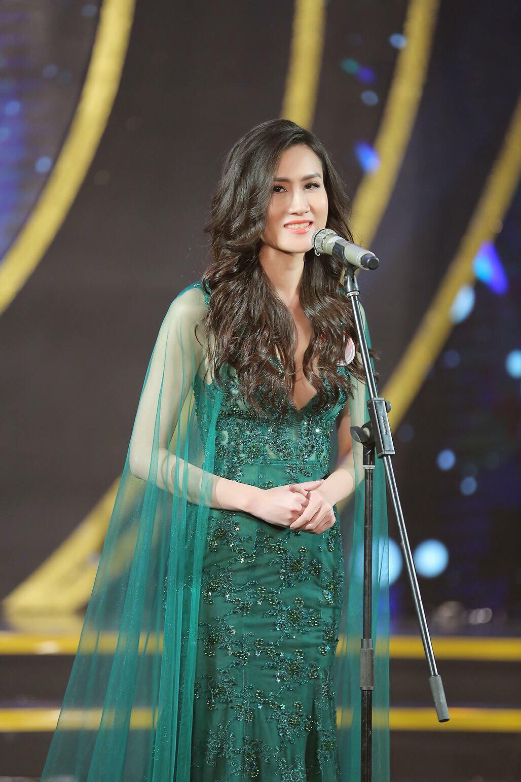Trong đêm chung kết, quý bà Hải Yến vô cùng nổi bật trong chiếc đầm xanh của NTK Đức Vincie. Chiếc đầm xanh từ chất liệu ren cao cấp được đính kết hàng nghìn hạt pha lê. Chiếc váy được làm hoàn toàn thủ công và mất gần 1 tháng để quý bà Hải Yến có thể tỏa sáng trong đêm chung kết.
