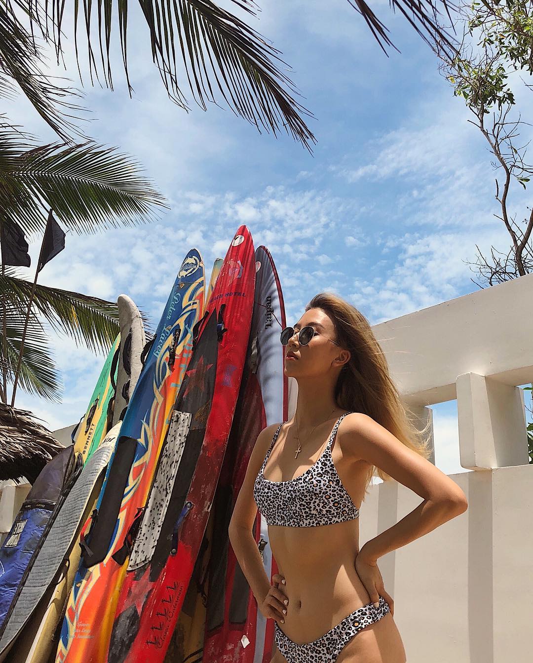 Quỳnh Anh Shyn bắt nhịp mùa hè khi chưng diện bộ bikini họa tiết da động vật khá ấn tượng. Nàng fashionista cũng mix cùng phụ kiện kính mát tròn khá retro, đem lại vẻ ngoài cá tính.