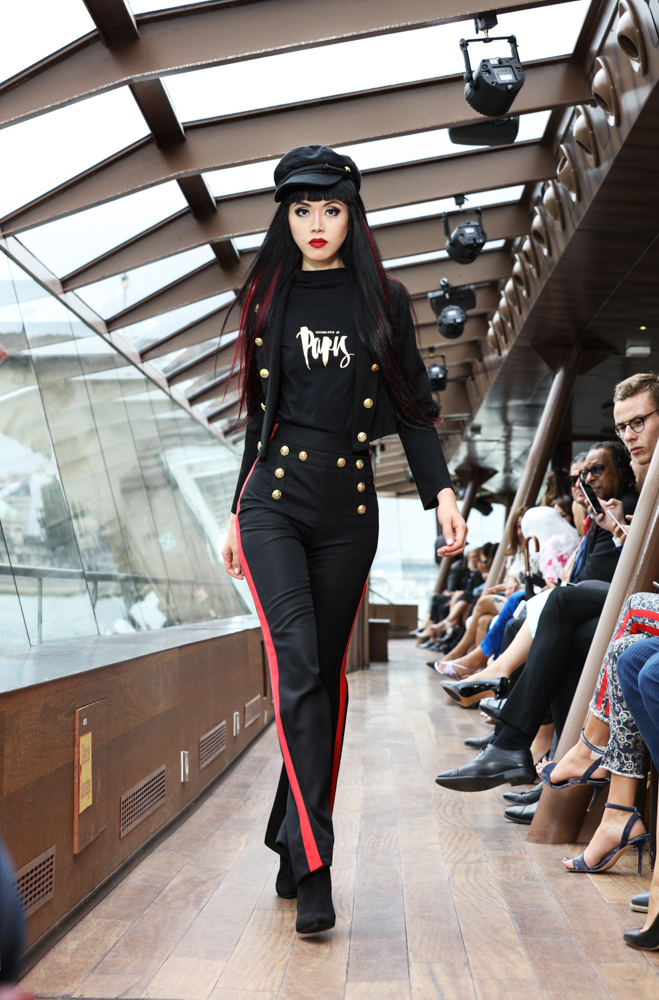 Du thuyền nơi diễn ra fashion show “Girls Run The World” được thiết kế xung quanh bằng kính với phần mũi thuyền được tạo hình lập thể và trồi ra vừa tạo sự ấn tượng lại khiến cho không gian trở nên rộng hơn.