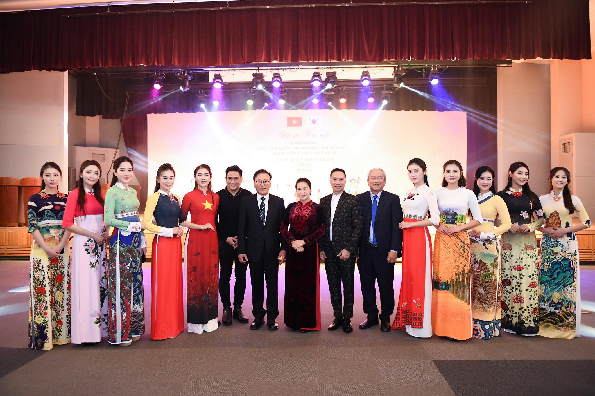Chủ tịch Quốc Hội Nguyễn Thị Kim Ngân, Ngài Moon Hee-sang, Chủ tịch Quốc hội Hàn Quốc, Đại sứ Nguyễn Vũ Tú, Đại sứ quán Việt Nam tại Hàn Quốc, NTK Đỗ Trịnh Hoài Nam, đạo diễn Minh Tiệp cùng những người mẫu Việt Nam và Hàn Quốc