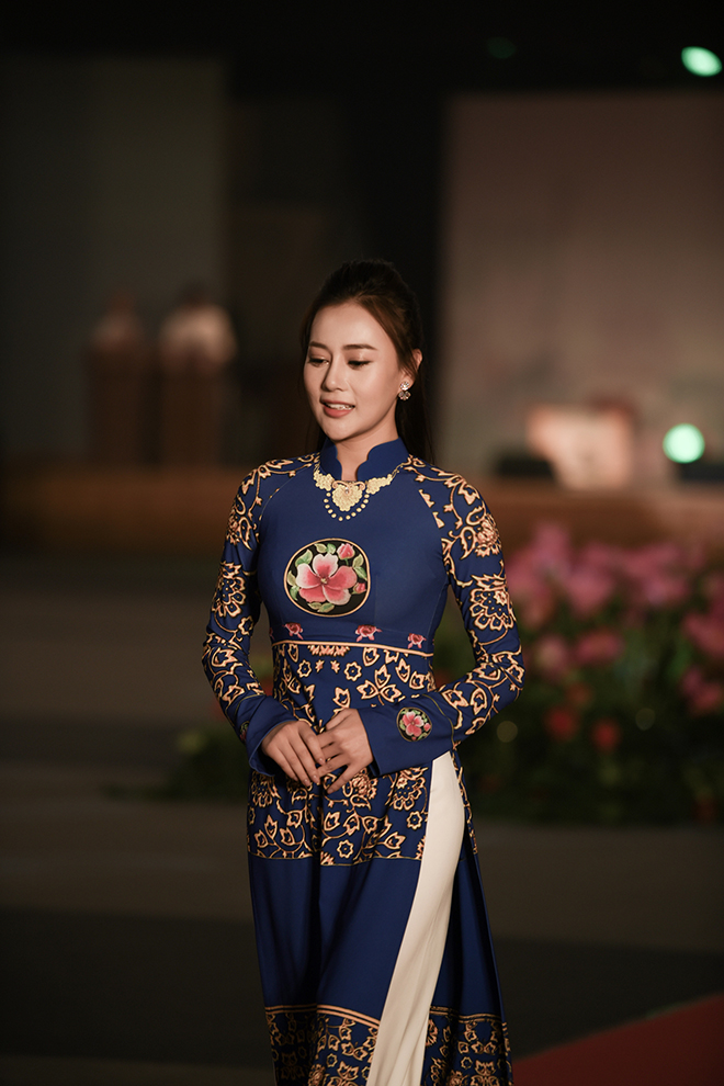 BST áo dài “Hàn Quốc” của NTK Đỗ Trịnh Hoài Nam được trình diễn trong dịp này. BST lấy ý tưởng từ những hoa văn, hoạ tiết của Hàn Quốc, những mẫu trang phục truyền thống của Hàn Quốc để đưa vào áo dài Việt. Thông qua kỹ thuật thêu đính, vẽ tay, thủ công từ bàn tay của người thợ những làng nghề nổi tiếng Việt Nam: Thường Tín, Mỹ Đức.