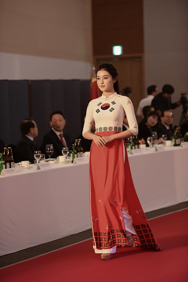Á hậu Huyền My được giao trọng trách mặc áo dài in họa tiết quốc kỳ Hàn Quốc