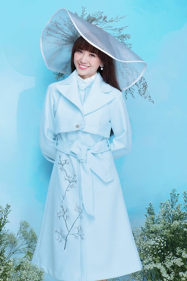 Mới đây, bà xã Trấn Thành lại khiến fan hâm mộ thích thú khi diện áo trench coat pastel, phối cùng nón rộng vành cài hoa làm điểm nhấn.