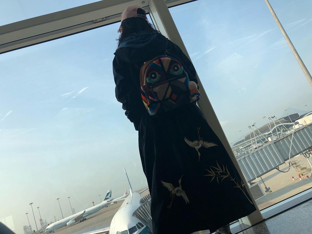 Thư Kỳ chọn áo freesize màu sáng và quần jeans đơn giản khi đi du lịch.