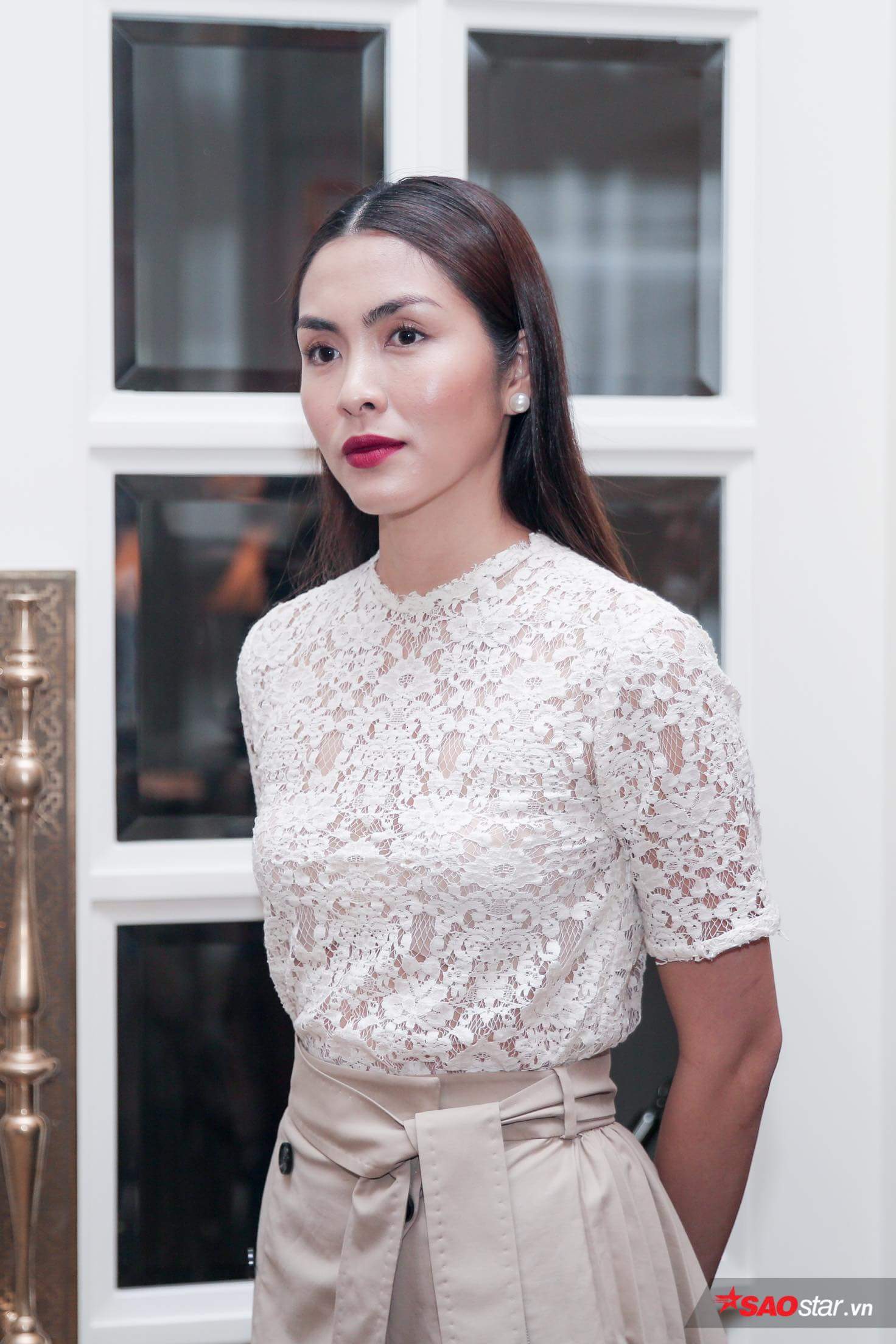 Tăng Thanh Hà cũng nhanh chóng tạo được sự chú ý. Nữ diễn viên ghi dấu ấn với set đồ gồm áo ren mix cùng chân váy quấn.