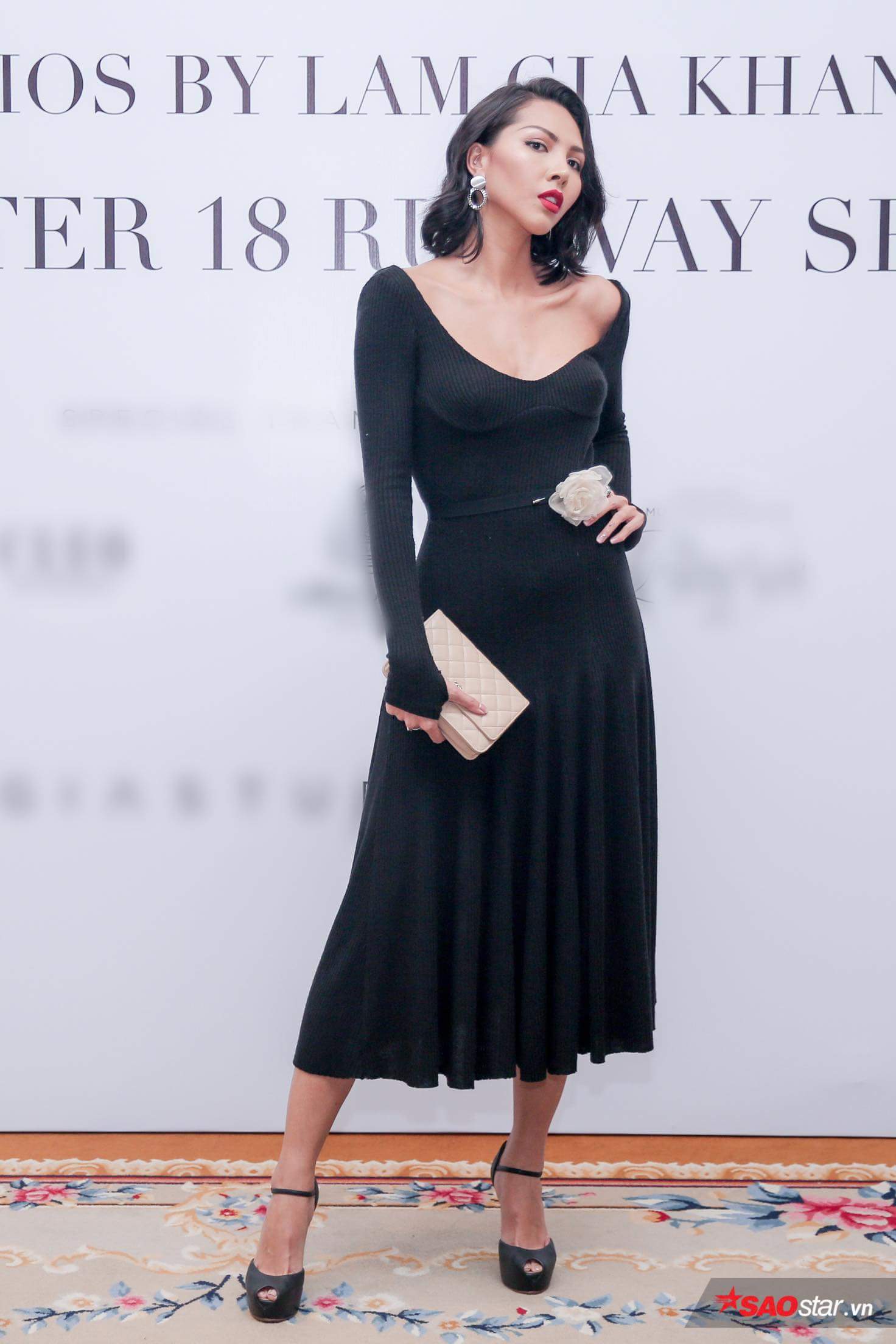 Lan Khuê diện cả cây đen cá tính đi xem show thời trang.
