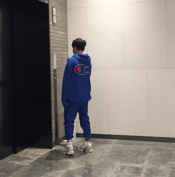 Cách phối đồ thường thấy nhất chính là mặc cùng set đồ thể thao cũng là một sản phẩm collab giữa Vetements và Champions.