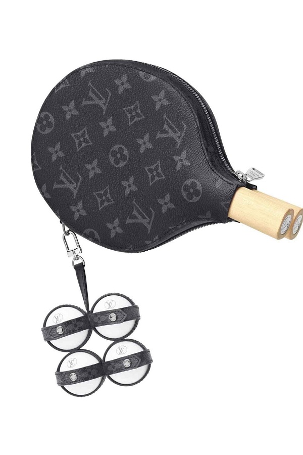 Hết ra mắt kiểu hộp bút chì màu đặc sắc, nhà mốt Louis Vuitton tiếp tục chiêu đãi các vị khách hàng của mình với sản phẩm set chơi bóng bàn với giá $2,750 ( tầm 64 triệu đồng). Set gồm vợt chơi bóng bàn cùng các quả bóng kèm theo. Bên cạnh đó, Set vợt với thiết kế miếng da Họa tiết monogram danh tiếng bao bọc cây đánh bóng bàn.