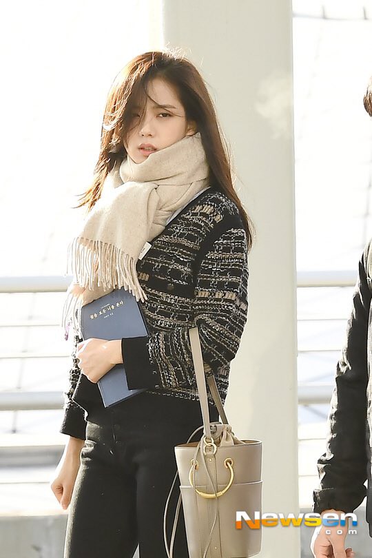 Cô nàng Jisoo chọn diện áo khoác phối cùng quần jeans đen và quàng khăn ấm áp. Ảnh chụp vội tại sân bay mà thành viên nhóm Black Pink vẫn xinh đẹp nổi bật.