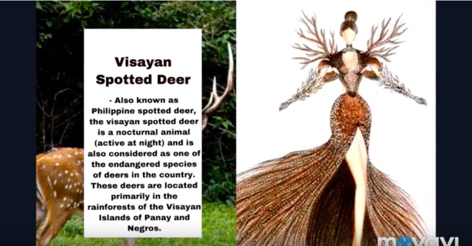 Ở một diễn biến khác, trước đó cũng xuất hiện top 10 mẫu trang phục dân tộc sẽ có cơ hội đồng hành với Hoa hậu Philippines. Trong số này các ý tưởng đều lấy từ động vật đặc trưng của đất nước Philippines. Ấn tượng nhất là các ý tưởng từ loài Trâu, Rùa, Cá.