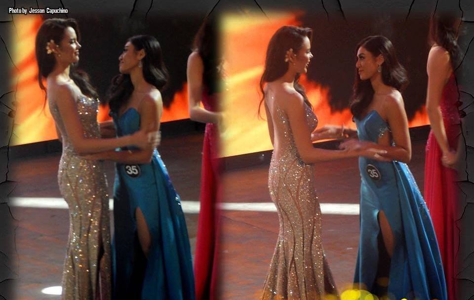 Ngay sau phần thi ứng xử kết thúc thì Catriona Gray đã đến và động viên Sandra. Điều này cũng không quá lạ bởi họ đã làm bạn tốt từ những ngày còn thi Miss World Philippines.