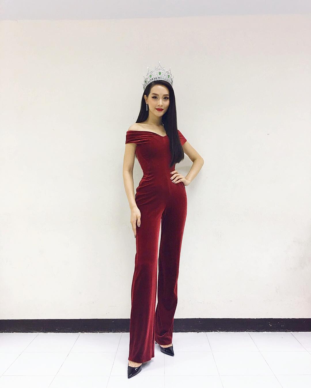 Người đẹp chia sẻ rằng cô thích những tông trang điểm màu đỏ nâu vì nó nhã nhặn lại sang trọng.