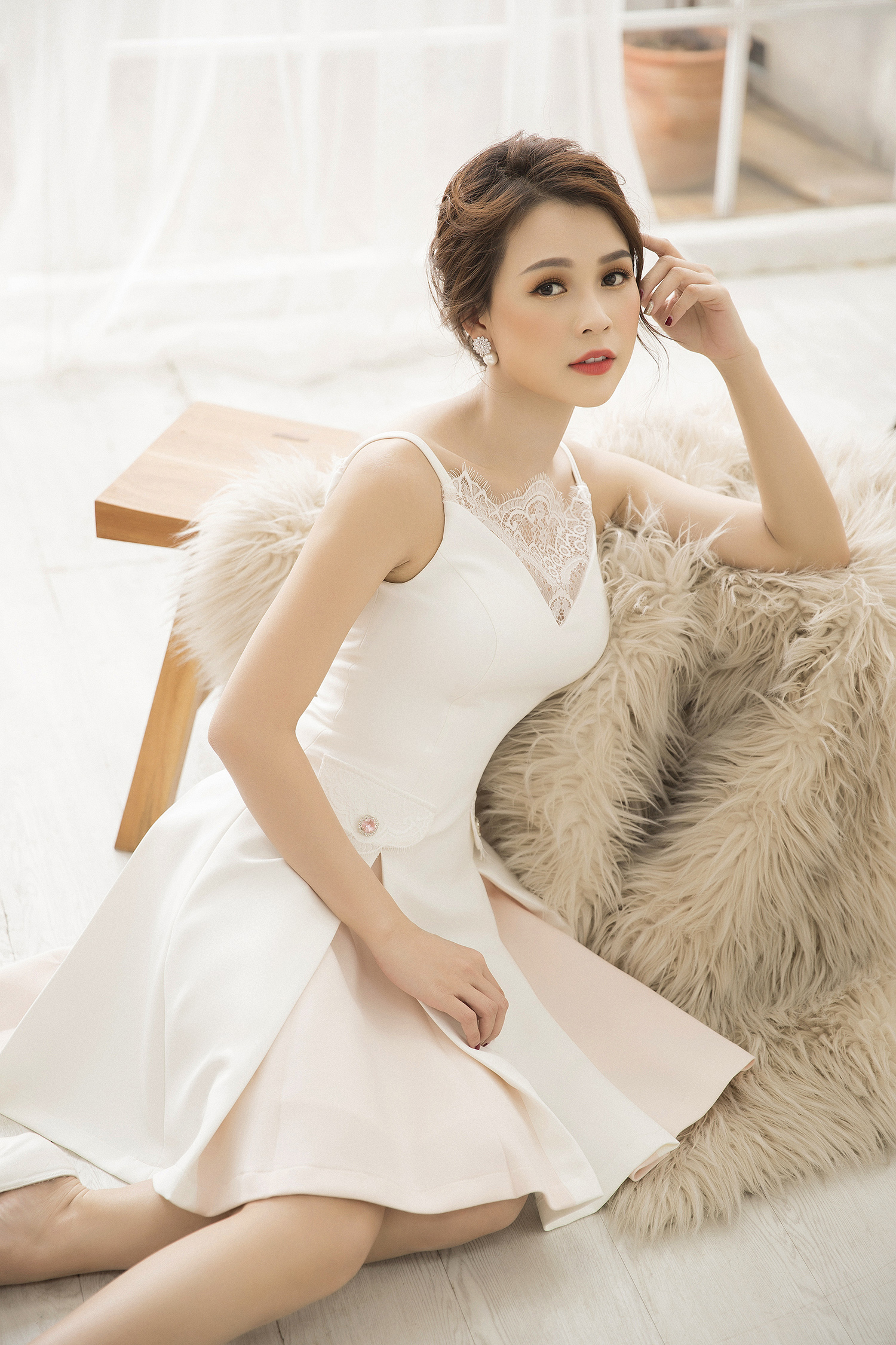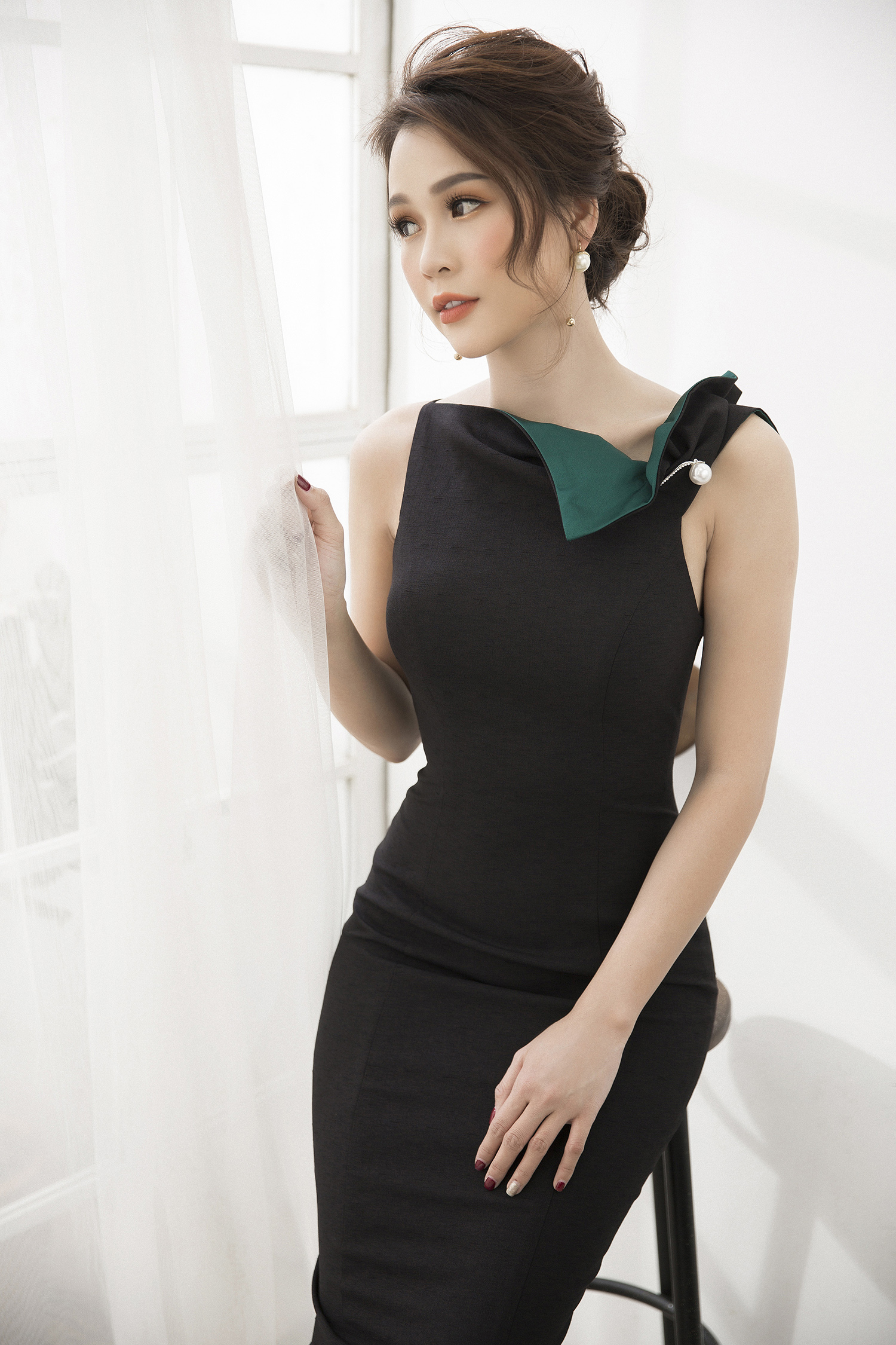Trong bộ ảnh mới, Sam lựa chọn kiểu tóc búi cao, đánh rối ở phần mái để tạo sự chững chạc, thu hút.
