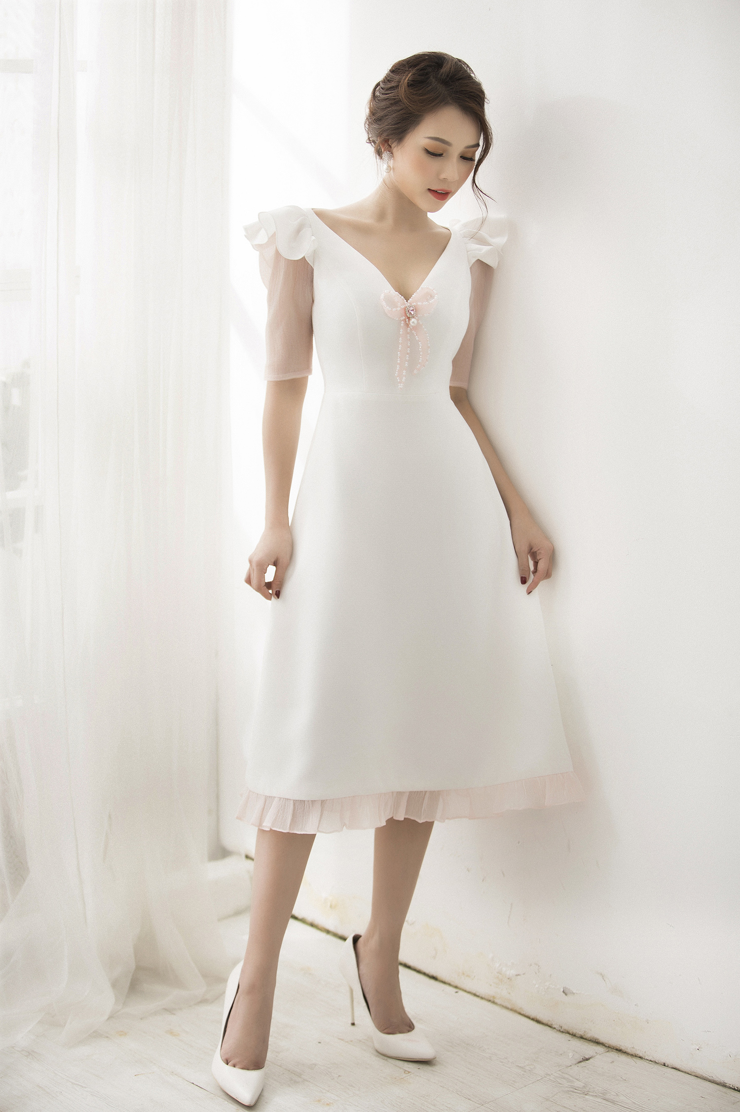 … Thì người đẹp nhanh chóng biến hóa phong cách ngọt ngào trong loạt váy xòe nhưng vẫn giữ được vẻ đẹp thanh lịch, rạng rỡ của một cô nàng thành thị.