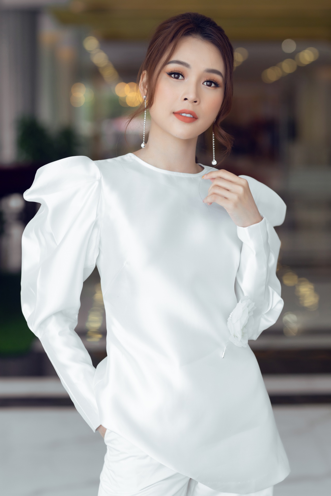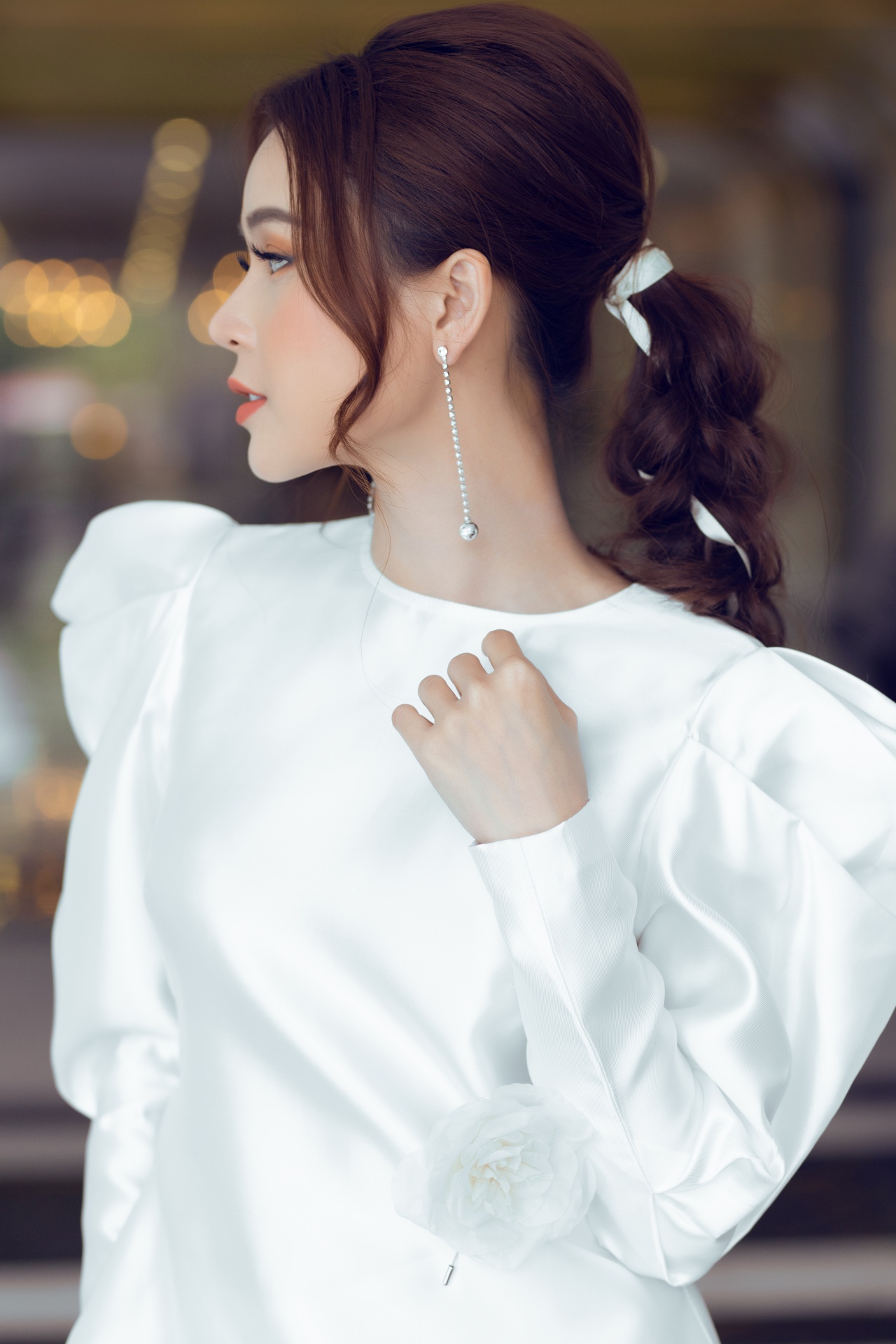 Không quá cầu kỳ, bộ cánh mà người đẹp chọn đem lại vẻ đẹp tự nhiên, gần gũi nhưng vẫn đủ độ nổi bật trên thảm đỏ. Để giữ được tổng thể phù hợp, cô nàng cũng không sử dụng quá nhiều phụ kiện mà chỉ mix cùng vài món, tuy nhỏ nhưng phải “đắt”, hợp lý với concept chung.