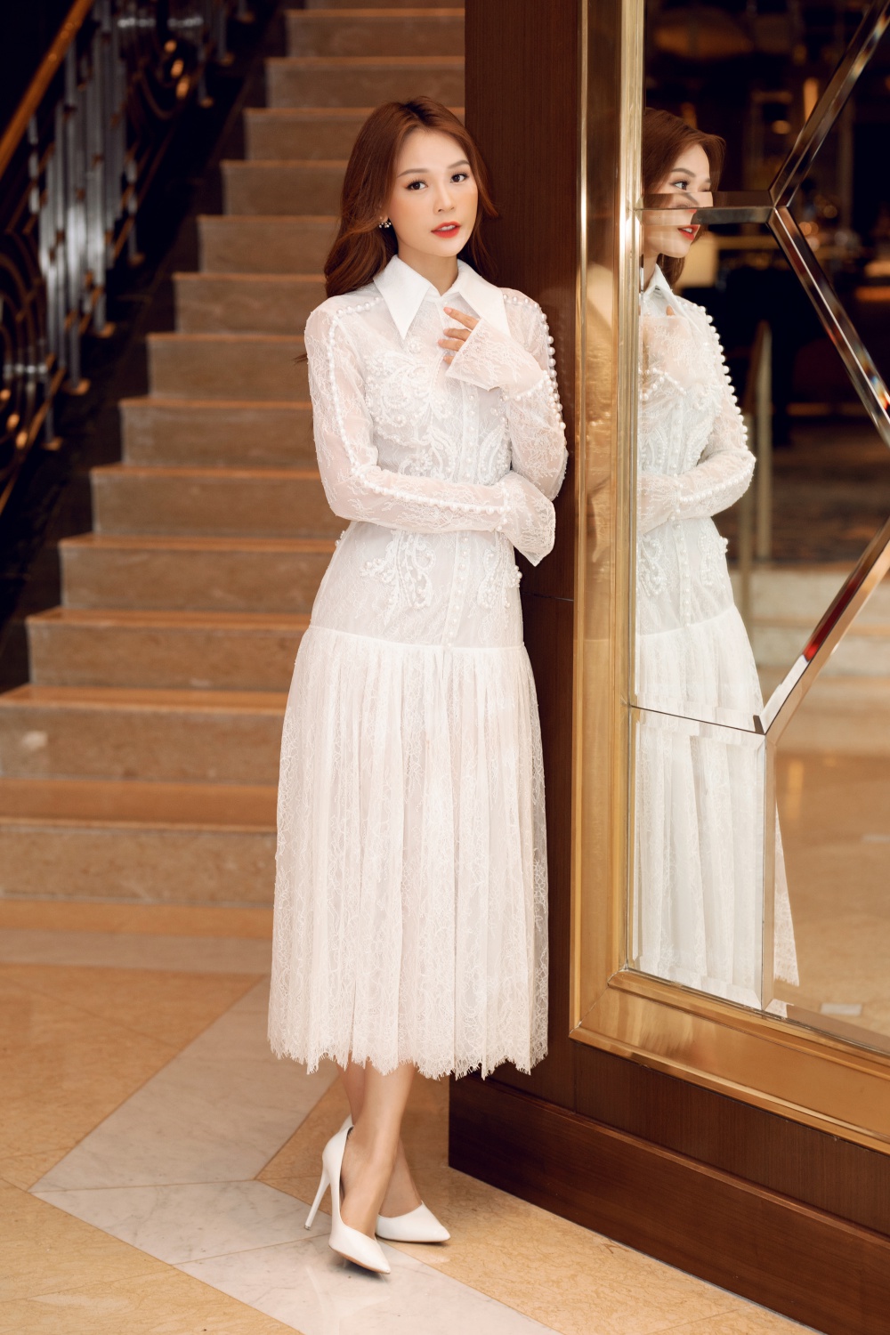 Vừa kết thúc chuyến công tác tại Hàn Quốc, Sam đã vội vã trở về Việt Nam để tham gia một sự kiện về làm đẹp. Xuất hiện với chiếc váy trắng của NTK Chung Thanh Phong, Sam khoe trọn vẻ mong manh hút ánh nhìn. Sam chia sẻ cô thường diện những trang phục trắng vì nó giúp cô tạo ấn tượng về sự tươi mới, trong trẻo.