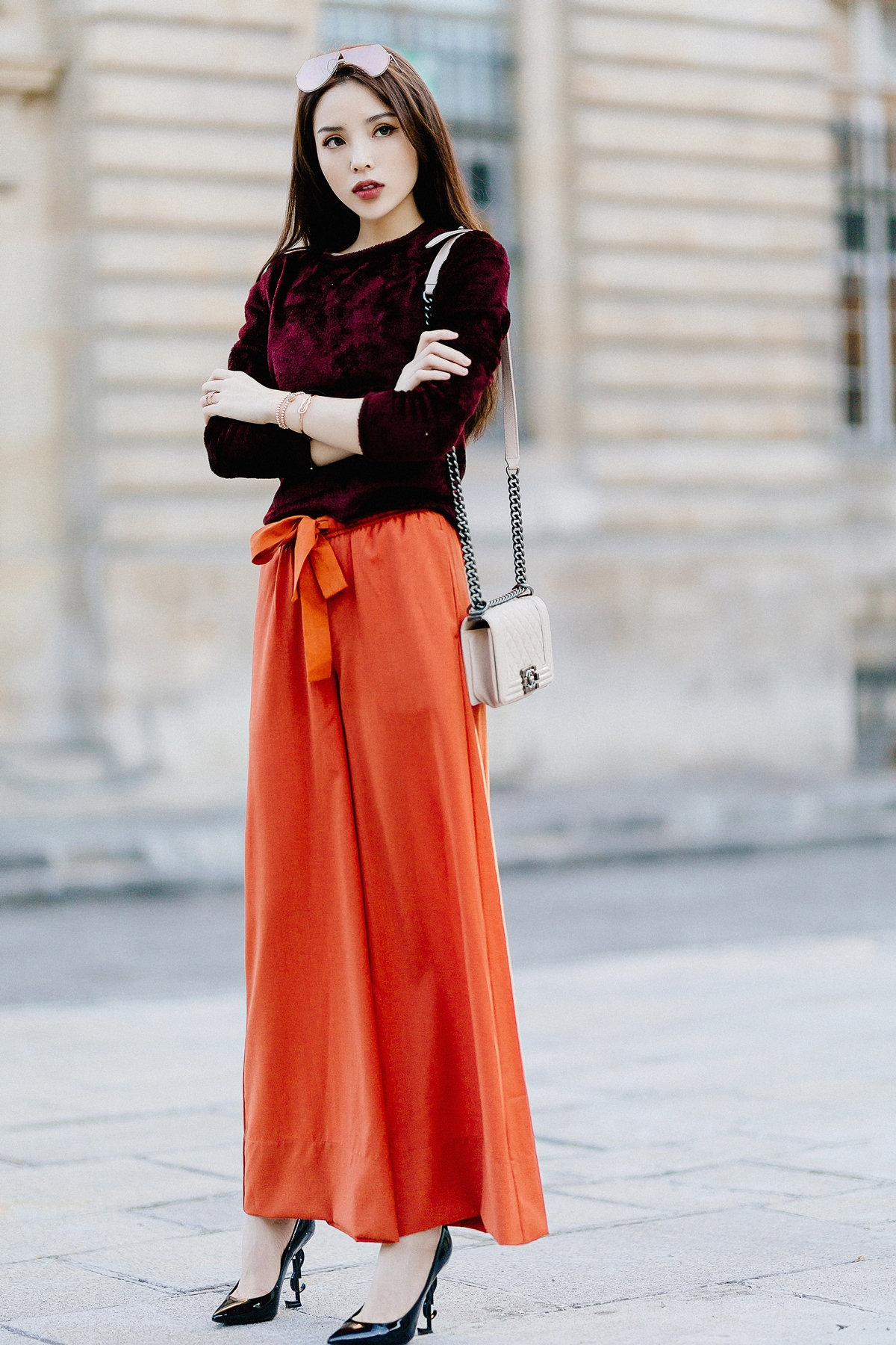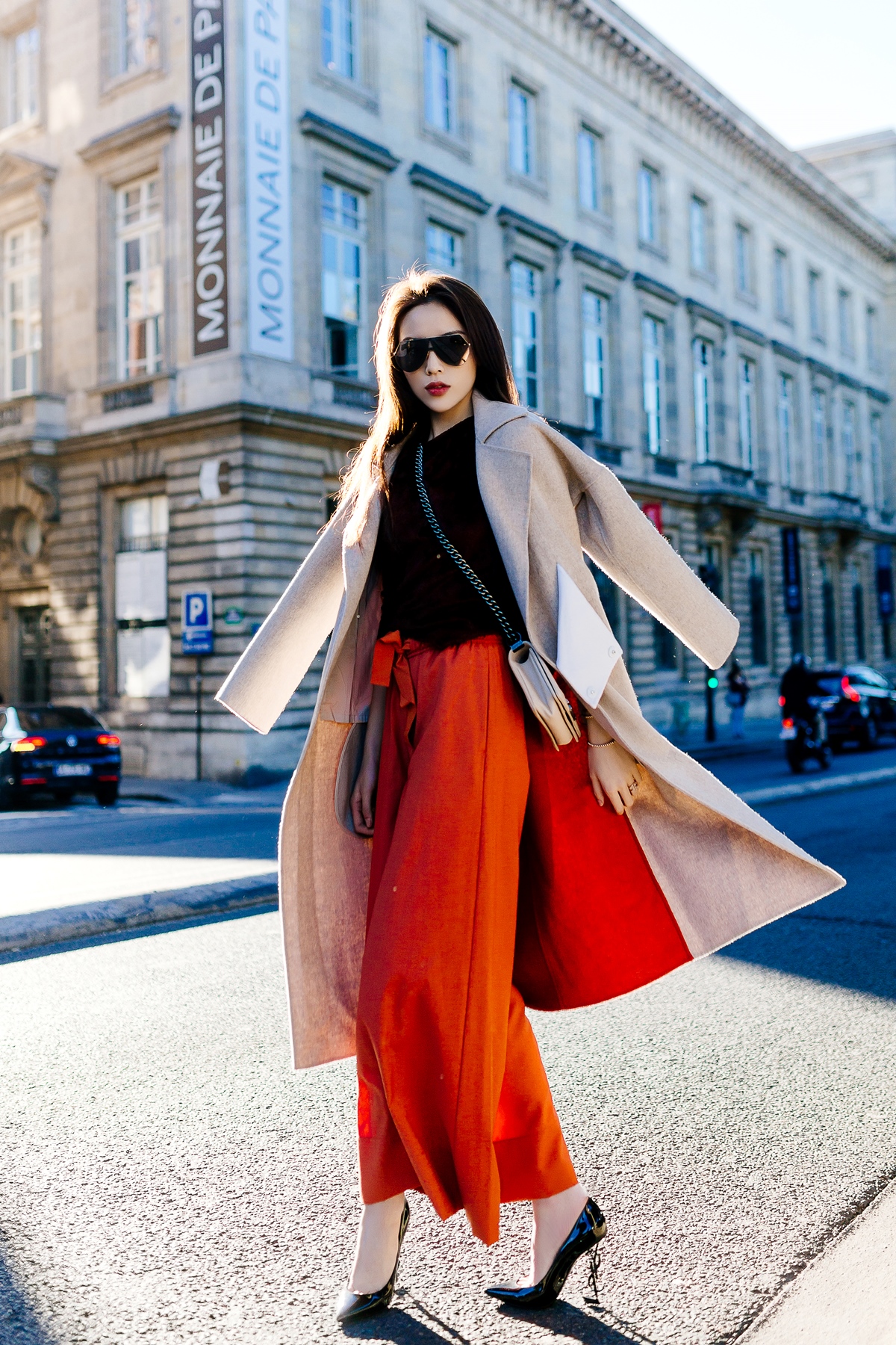 Trên phố Paris, Kỳ Duyên khoe gu thời trang thời thượng, xứng danh “fashion icon”. Xu hướng túi đeo hông của thập niên 1980, 1990 cũng được Kỳ Duyên đón đầu và lăng xê tích cực.