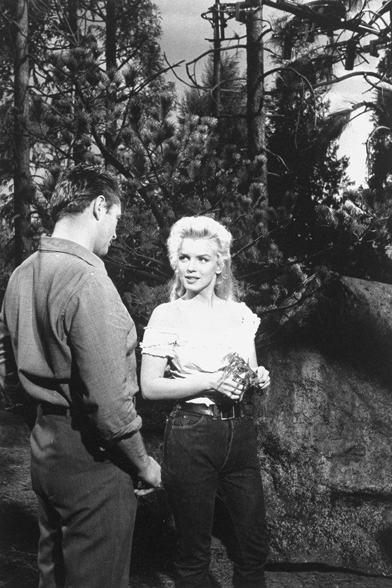 Chúng ta đều biết hình ảnh chiếc váy trắng nổi tiếng của Marilyn Monroe. Nhưng cô cũng thu hút sự chú ý rất lớn khi mặc một chiếc quần jean. Marilyn Monroe kết hợp quần jean rách tối màu với áo yếm trắng, thắt lưng to bản trong cảnh quay với Robert Mitchum năm 1954 và đã trở thành biểu tượng.