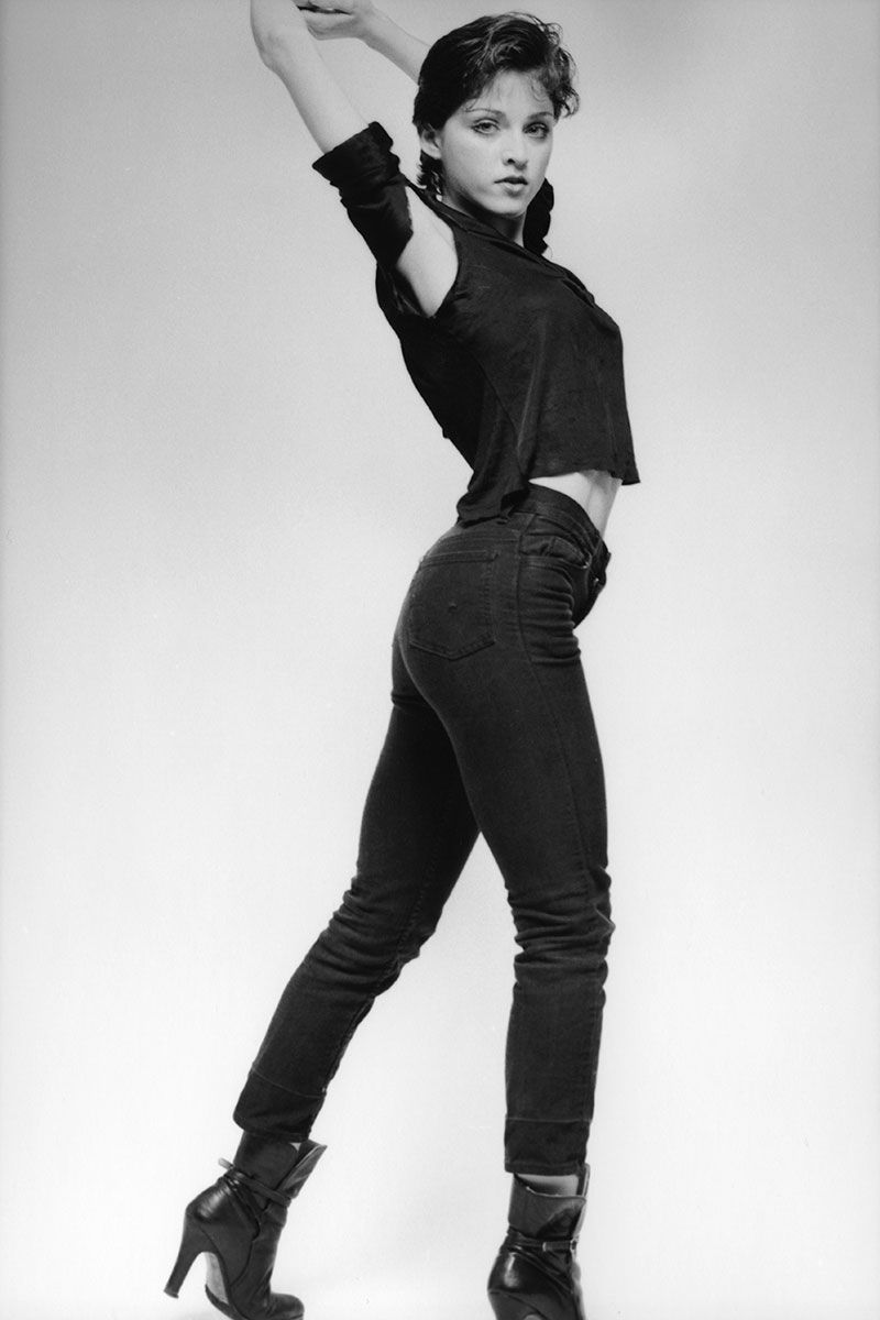 Madonna nhìn đơn giản và sang trọng tuy chỉ chụp hình trong studio. Nữ ca sĩ mặc áo sơ mi đen cutout, quần jeans ống đứng và giày cao gót.