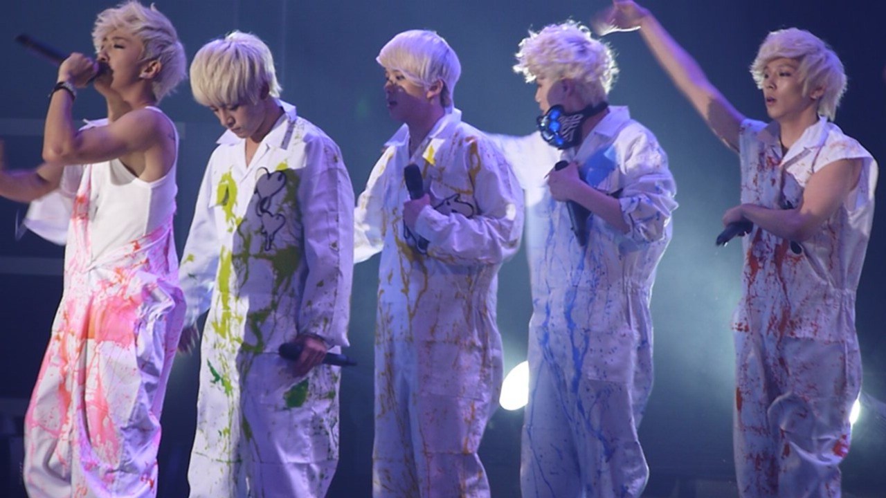 Là do stylist của B.A.P quá tự tin hay quá ‘bay’ mà lại có thể để idol diện quần áo kỳ quặc như vậy lên sân khấu? B.A.P với quần áo vẩy sơn trong sân khấu Warrior làm fan chỉ muốn mất trí nhớ.