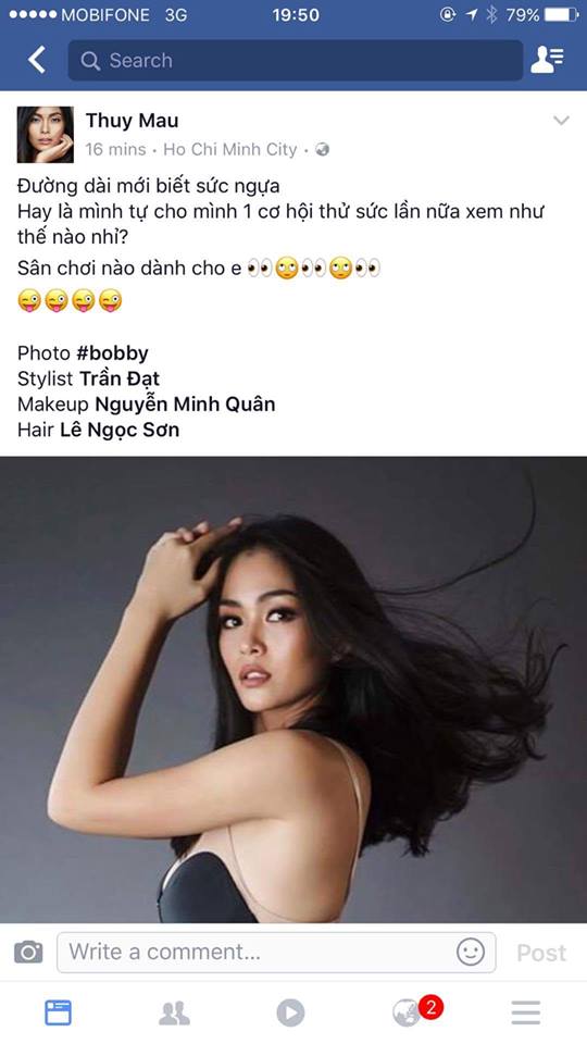 Vài giờ trước, nàng mẫu Mâu Thủy đã đăng tải hình ảnh của mình kèm theo dòng trạng thái úp mở việc sẽ tham gia Hoa hậu Hoàn Vũ 2017. Mặc dù, nhiều đồn đoán cho rằng cô nàng cùng người đẹp Minh Tú sẽ là đối thủ đáng gờm cho các nhan sắc khác tại cuộc thi lần này. Tuy nhiên, thông tin vẫn chưa chính thức được xác định nhưng các giả hâm mộ vẫn mong chờ sự xuất hiện của 2 mỹ nhân hot trong làng mốt.