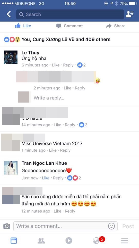 Không chỉ các người bạn trong nghề ủng hộ mà ngay cả nàng siêu mẫu Lan Khuê cũng âm thầm cổ vũ và tiếp thêm sức mạnh cho cô nàng tại Hoa hậu Hoàn Vũ 2017.