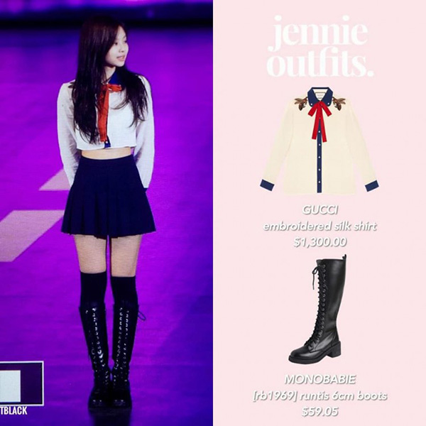 Jennie là ngôi sao trẻ mạnh tay nhất trong khoản không tiếc tay cắt xén hàng hiệu. Cô đã chỉnh sửa rất nhiều váy áo để có được hình ảnh hấp dẫn nhất khi lên sân khấu. Mẫu váy của thương hiệu Godia có giá 1.877 USD (khoảng 44 triệu đồng) dài chấm gót được nữ ca sĩ cùng với stylist mạnh tay biến đổi thành mẫu thiết kế high low.