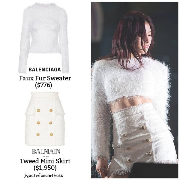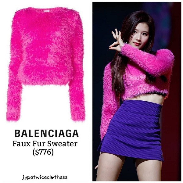 Mẫu áo lông ngọt ngào của Balenciaga có giá 776 USD (khoảng 19 triệu đồng) cũng bị Sana cắt phăng không tiếc tay.
